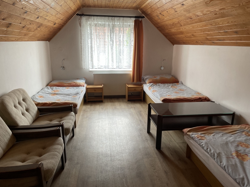 | Ložnice (17 m2, 1 x samostatné lůžko, 1 x manželské lůžko, 1 x postýlka pro kojence - na poptávku) |