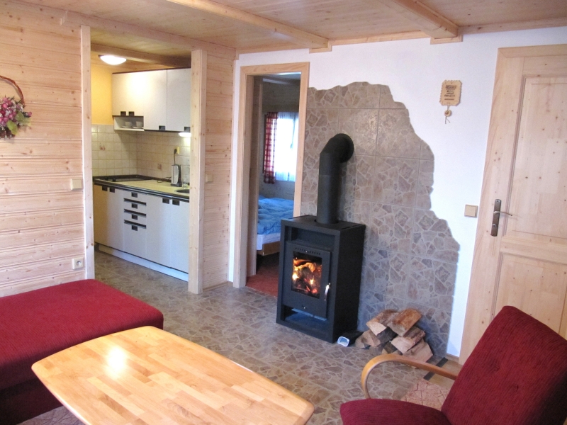 | Vytápění | tuhá paliva lokální (obsluhuje host), (krbová kamna v obýváku vytápějí celý objekt.) |