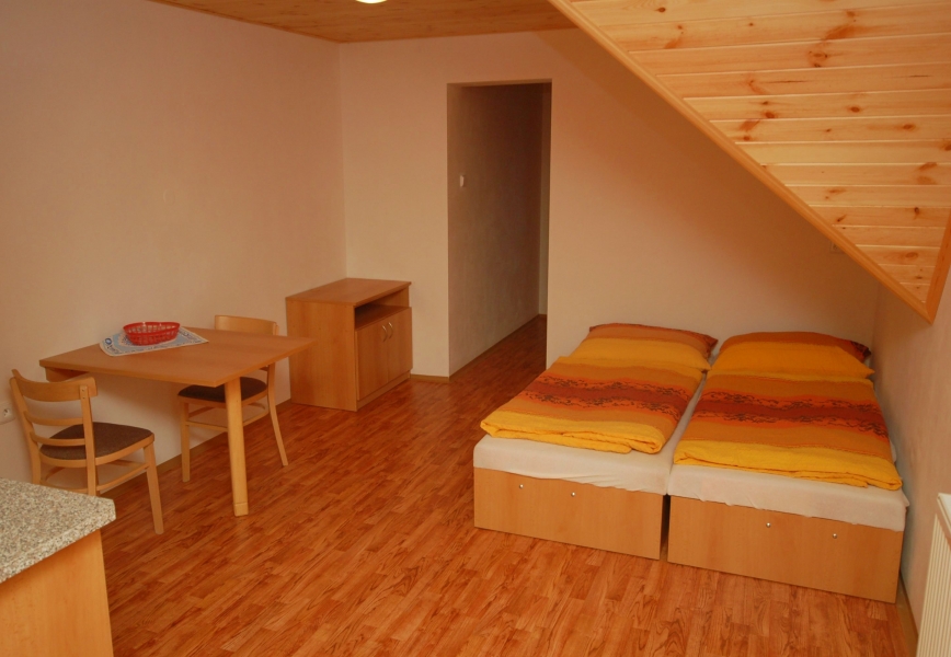 | Obytná místnost (25 m2, 2 x manželské lůžko, počet míst u jídelního stolu: 4, kuchyňský kout, jídelní kout) |