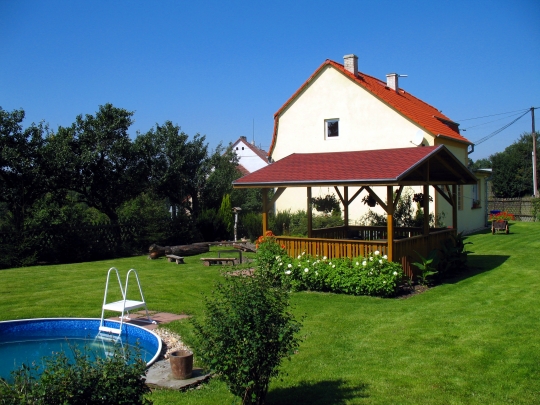 Skvělá chata s bazénem a vyžitím na zahradě pro děti i dospělé.