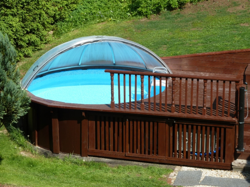 | Bazén | venkovní (prům.3,6 m, hl. 1,2 m, s filtrací, vyhřívaný tepelným čerpadlem od května do září, krytý otočnou kopulí) |