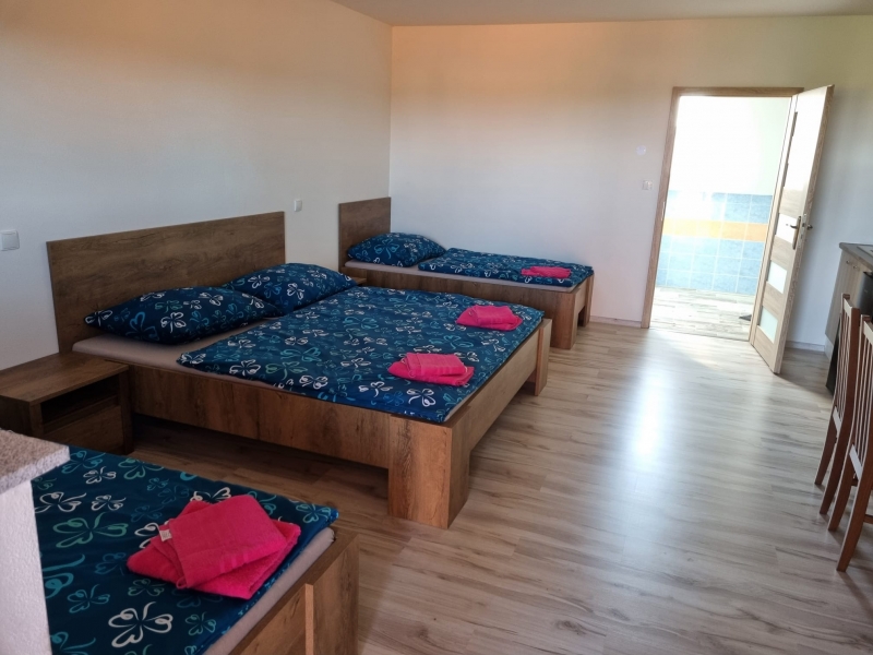 | Ložnice (30 m2, 2 x samostatné lůžko, 1 x manželské lůžko, počet míst u jídelního stolu: 4, kuchyňský kout, jídelní kout) |