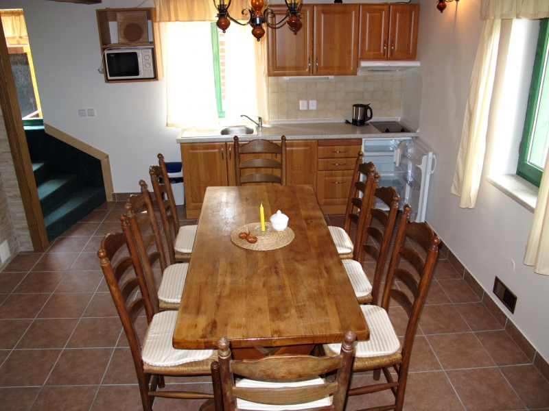 | Obytná místnost (24 m2, počet míst u jídelního stolu: 8, počet křesel: 1, počet pohovek: 1, kuchyňský kout, jídelní kout, místnost je průchozí) |