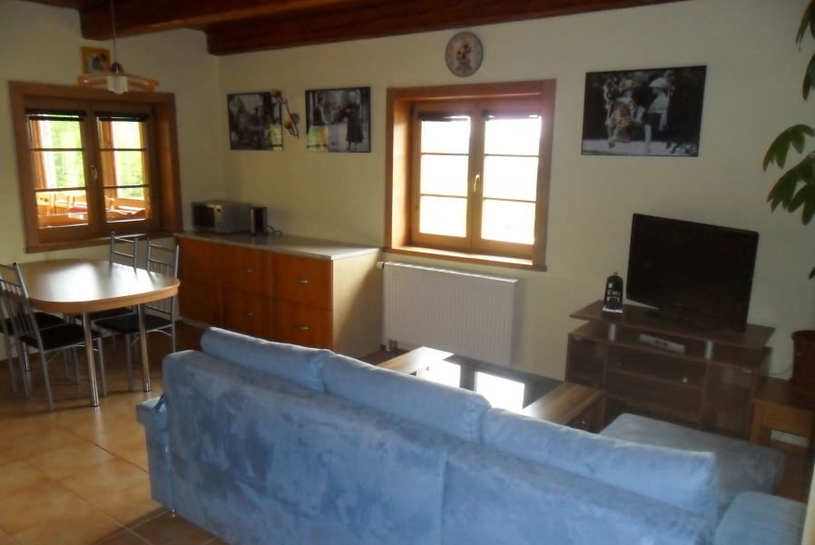 Prostorná a dobře vybavená část rodinného domu s vnitřním bazénem situovaná na samotě uprostřed přírody v krásné lokalitě mezi Českým Krumlovem a jezerem Lipno.