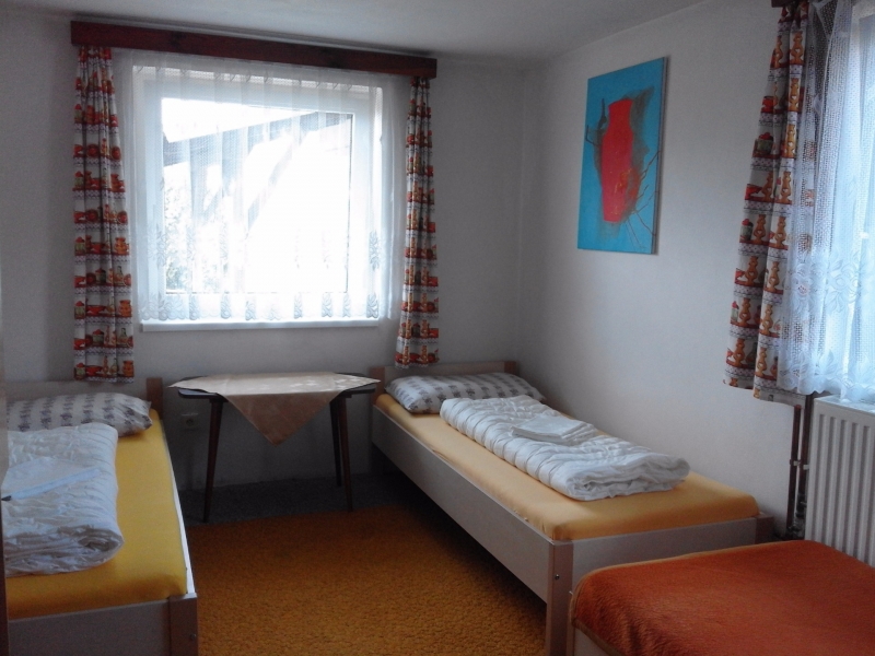 | Ložnice (15 m2, 3 x samostatné lůžko, místnost je průchozí) |