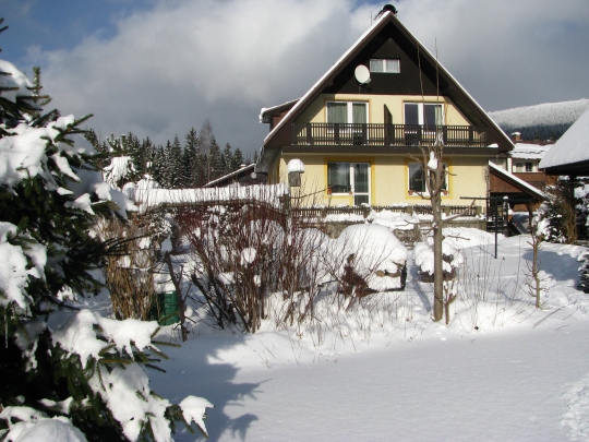 Velkoryse řešený apartmán se třemi koupelnami a nádherným výhledem na Čertovu horu. Klidná ulice nedaleko centra Harrachova.